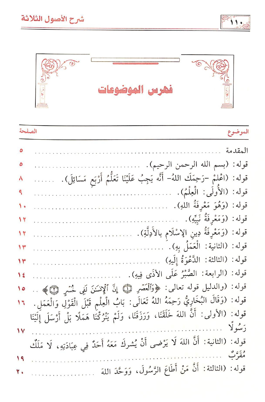 شرح الثلاثة الاصول - طبعة دار العقيدة للنشر والتوزيع - TOC - 2