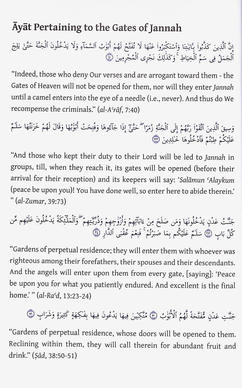 The 8 Gates of Jannah is a scholarly collation of Qur'anic passages and prophetic traditions speaking about these paradisal gateways and how we can be among those admitted through them.